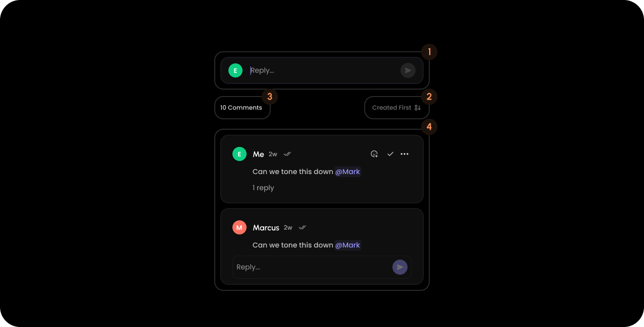 Here are the pre-deinfed variants:dialog-variant: Use this to customize theComment Dialogthat appears within theInline Comments Sectioncomponent.variant: Use this to customize the entireInline Comments Sectioncomponent itself.composer-variant: Use this to customize the main Composer that appears within theInline Comments Sectioncomponent.
